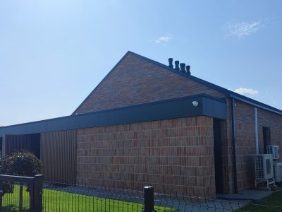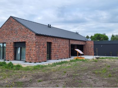 Dom na działce o powierzchni 1249 m², posiada 4 sypialnie, salon z jadalnią i kuchnią, siłownię, 3 łazienki, pralnię z kotłownią, garaż 2-stanowiskowy. Dach przystosowany do montażu paneli fotowoltaicznych. Łączna powierzchnia domu i pomieszczeń pomocniczych zadaszonych wynosi 218,80 m².
